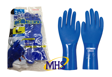 ถุงมือ TOWA #655 เคลือบ PVC 26cm สีน้ำเงิน